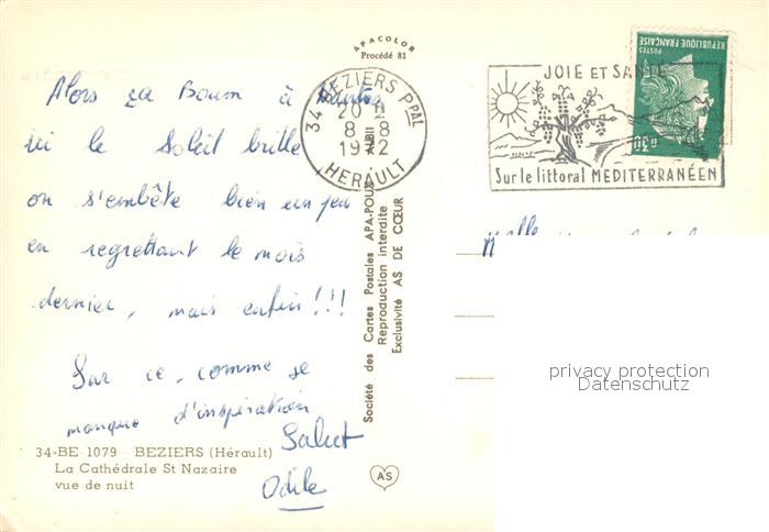 13660648 Beziers La Cathedrale St Nazaire vue de nuit postalisch gelaufen Erhaltung siehe scans [WerneD78] carte postale Wern Katcode 11170034134032
