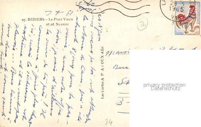 13503435 carte postale Beziers Le Pont Vieux et St Nazaire postalisch gelaufen Erhaltung siehe scans [WerneD78] KatCode: 11170034134032