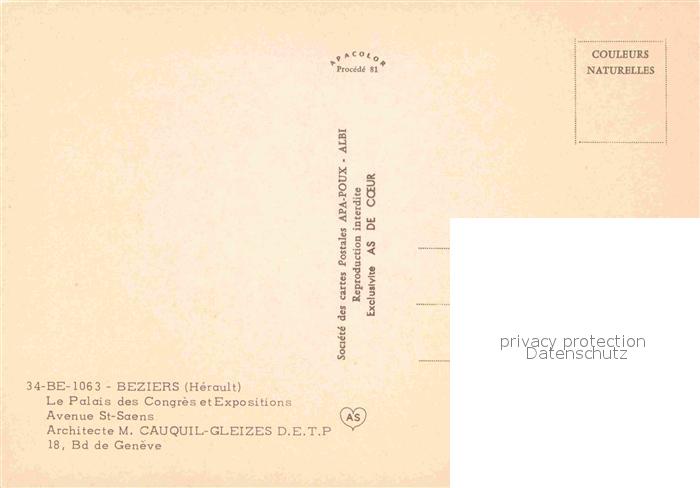 12838372 Beziers Palais des Congres et Expositions Avenue St Saens postalisch nicht gelaufen Erhaltung siehe scans [WerneD78] KatCode: 11170034134032