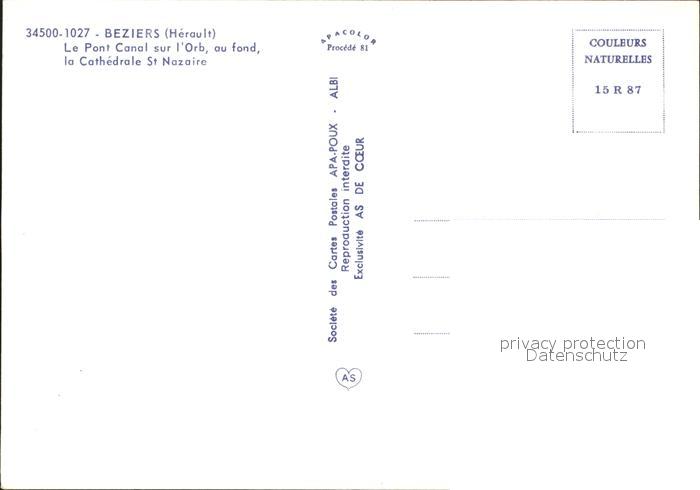 12329508 Beziers Pont Canal sur l’Orb Cathedrale St Nazaire postalisch nicht gelaufen Erhaltung siehe scans KatCode: 11170034134032