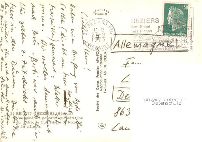 13718674 Beziers Vue aérienne sur l Orb Cathedrale Saint Nazaire et la ville postalisch gelaufen Erhaltung siehe scans [FriedD77] carte postale Frie Katcode 11170034134032
