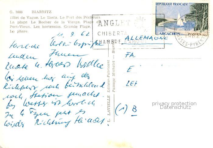 13036371 carte postale Biarritz Pyrenees Atlantiques Basta Port des Pecheurs Strand postalisch gelaufen Erhaltung siehe scans [KathaD81] KatCode: 11170064164122