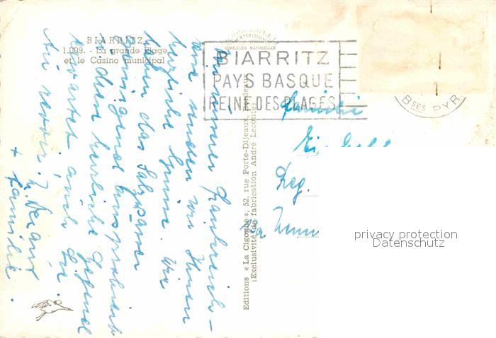 12786540 carte postale Biarritz Pyrenees Atlantiques Casino Municipal postalisch gelaufen Erhaltung siehe scans [LiesaD40] KatCode: 11170064164122