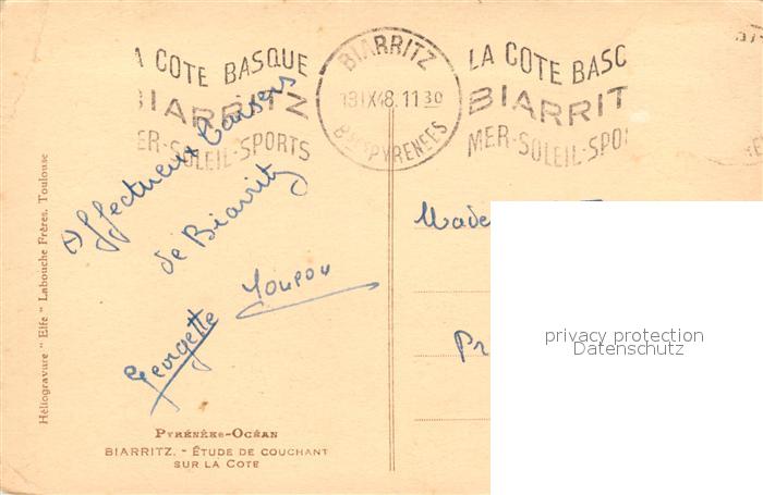 13536057 carte postale Biarritz Pyrenees Atlantiques Etude de couchant sur la Cote postalisch gelaufen Erhaltung siehe scans [WerneD78] KatCode: 11170064164122