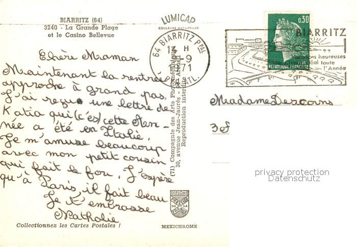 13519517 Biarritz Pyrenees Atlantiques Fliegeraufnahme Grande Plage Casino Bellevue KatCode 11170064164122