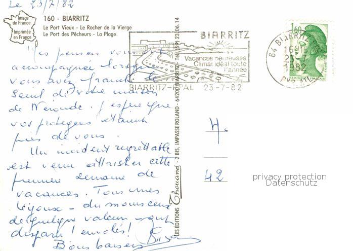 12888859 carte postale Biarritz Pyrenees Atlantiques Fliegeraufnahme Hafen postalisch gelaufen Erhaltung siehe scans [AndreD76] KatCode: 11170064164122