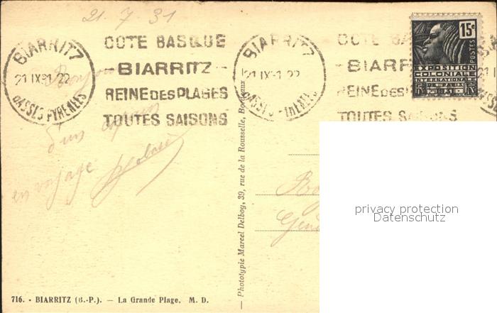 11674778 Biarritz Pyrenees Atlantiques Grande Plage KatCode 11170064164122