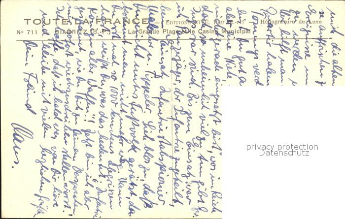 12509764 Biarritz Pyrenees Atlantiques Grande Plage casino Municipal postalisch nicht gelaufen Erhaltung siehe scans KatCode: 11170064164122
