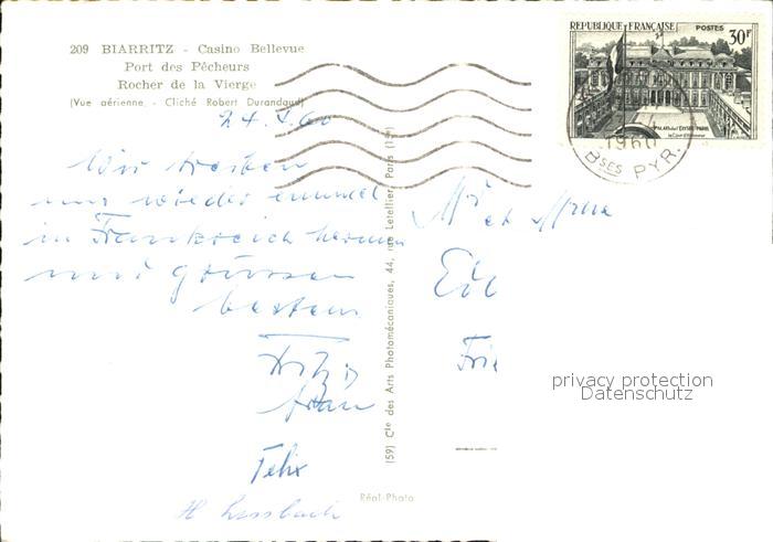 12538808 carte postale Biarritz Pyrenees Atlantiques Hafen Pecheurs Luftaufnahme postalisch gelaufen Erhaltung siehe scans [KathaD75 dp141box] KatCode: 11170064164122