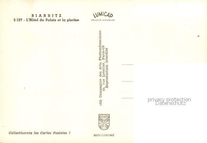 13039754 Biarritz Pyrenees Atlantiques Hotel du Palais et la piscine postalisch nicht gelaufen Erhaltung siehe scans [WerneD78] KatCode: 11170064164122