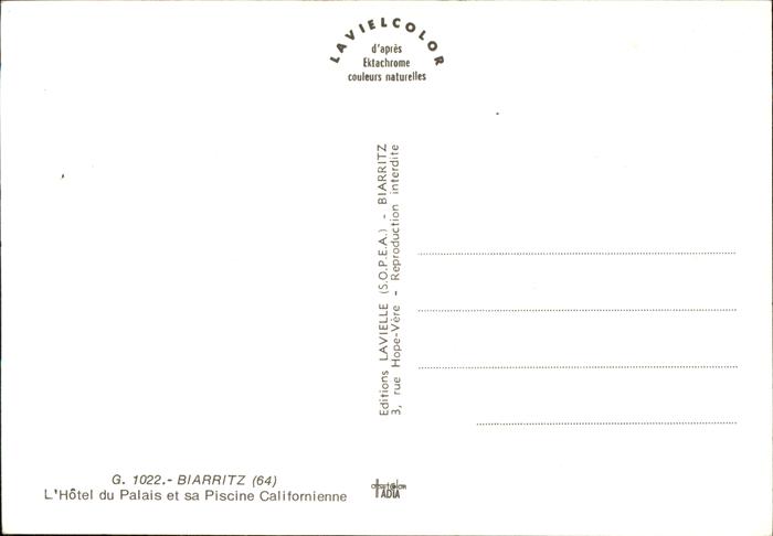 11475345 Biarritz Pyrenees Atlantiques Hotel du Palais et Piscine Californienne Plage KatCode 11170064164122