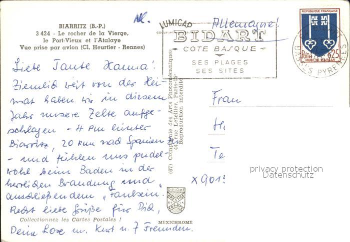 12431042 carte postale Biarritz Pyrenees Atlantiques Kueste Meer Hotel postalisch gelaufen Erhaltung siehe scans KatCode: 11170064164122