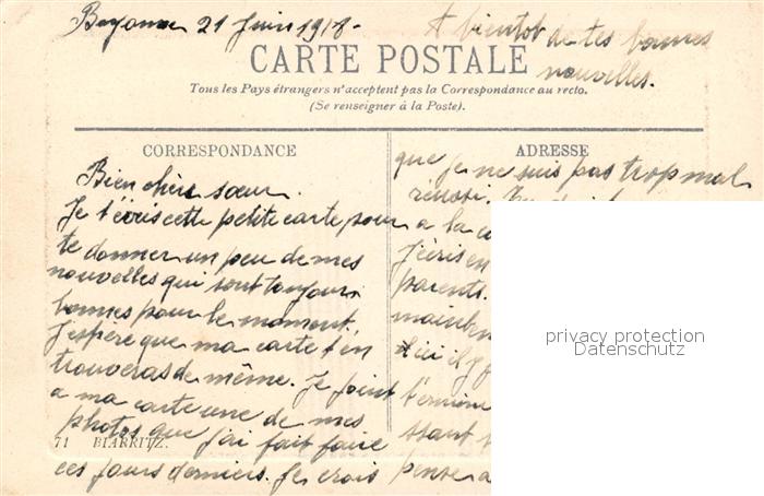 13533728 Biarritz Pyrenees Atlantiques La Cote des Basques postalisch nicht gelaufen Erhaltung siehe scans [LiesaD40] KatCode: 11170064164122