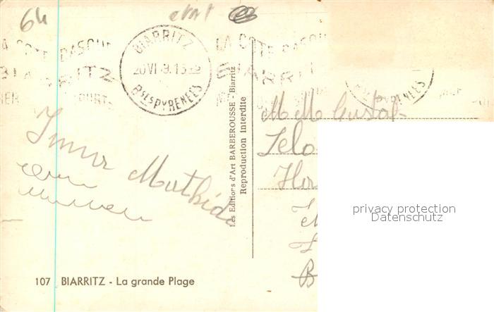13545290 carte postale Biarritz Pyrenees Atlantiques La grande Plage postalisch gelaufen Erhaltung siehe scans [KathaD81] KatCode: 11170064164122