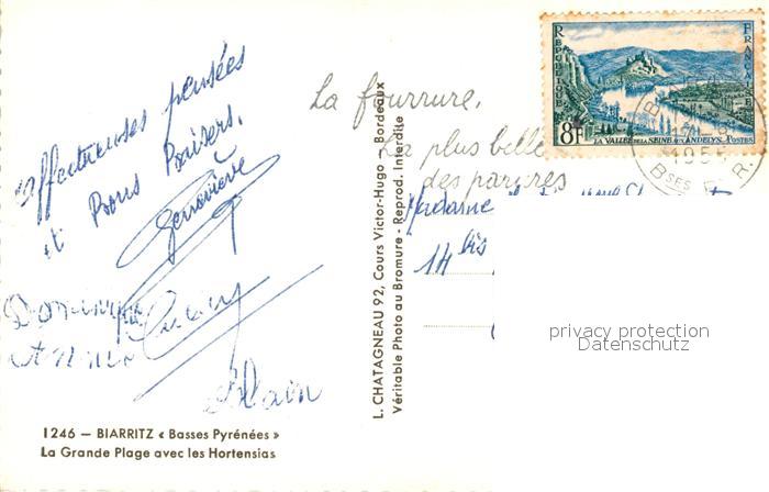 13535178 carte postale Biarritz Pyrenees Atlantiques La grande plage avec les Hortensias postalisch gelaufen Erhaltung siehe scans [FriedD77] KatCode: 11170064164122