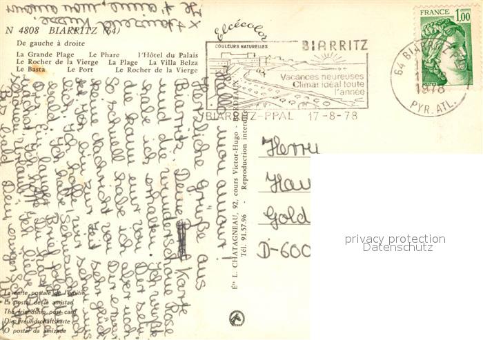 13144004 carte postale Biarritz Pyrenees Atlantiques La Grande Plage Le Phare Hotel du Palais postalisch gelaufen Erhaltung siehe scans [WerneD78] KatCode: 11170064164122