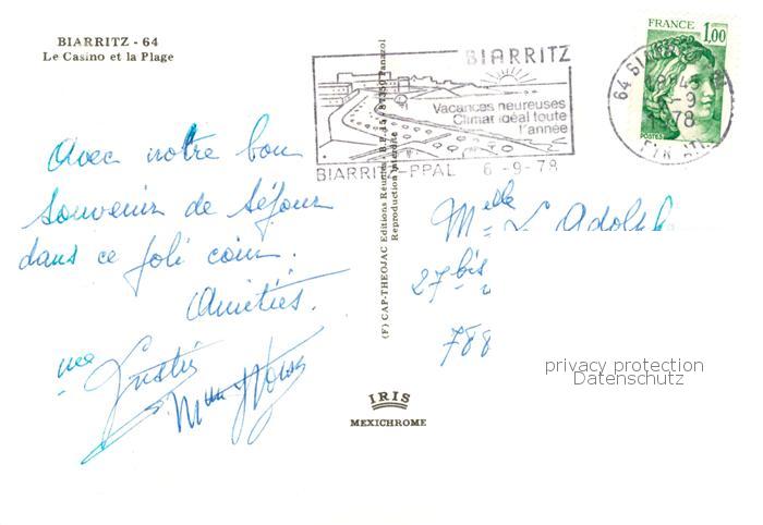 13814786 Biarritz Pyrenees Atlantiques Le Casino et la Plage postalisch gelaufen Erhaltung siehe scans [WerneD78] carte postale Wern Katcode 11170064164122