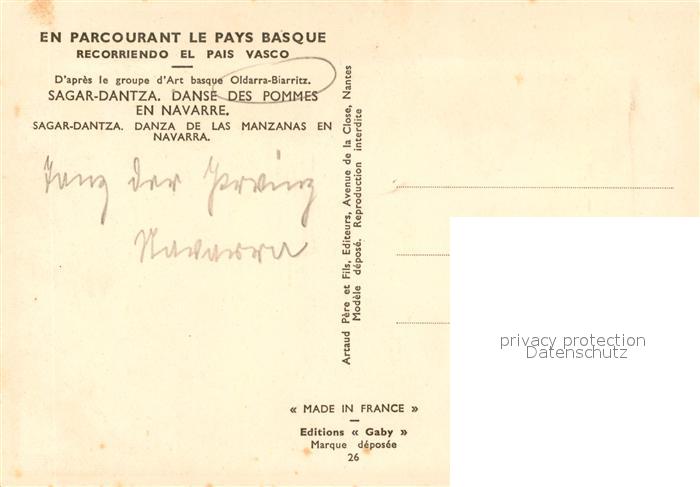 13525952 Biarritz Pyrenees Atlantiques Le Groupe d’Art Basque postalisch nicht gelaufen Erhaltung siehe scans [WerneD78] KatCode: 11170064164122