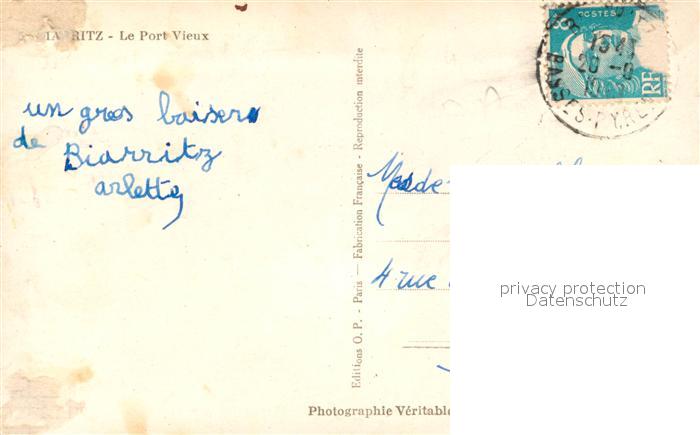 13535505 carte postale Biarritz Pyrenees Atlantiques Le Port Vieux Plage postalisch gelaufen Erhaltung siehe scans [FriedD77] KatCode: 11170064164122