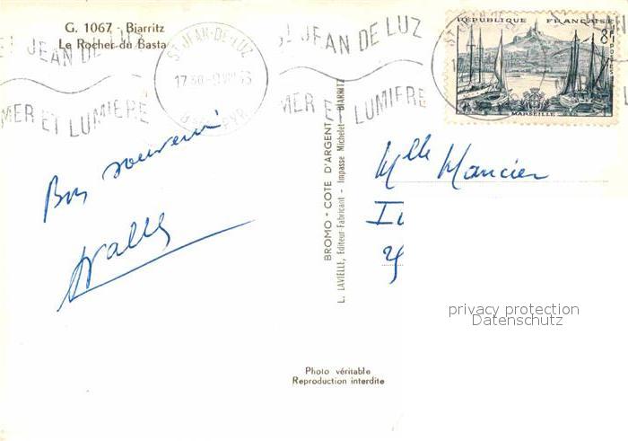 12811468 carte postale Biarritz Pyrenees Atlantiques Le Rocher de Basta postalisch gelaufen Erhaltung siehe scans [FriedD77] KatCode: 11170064164122