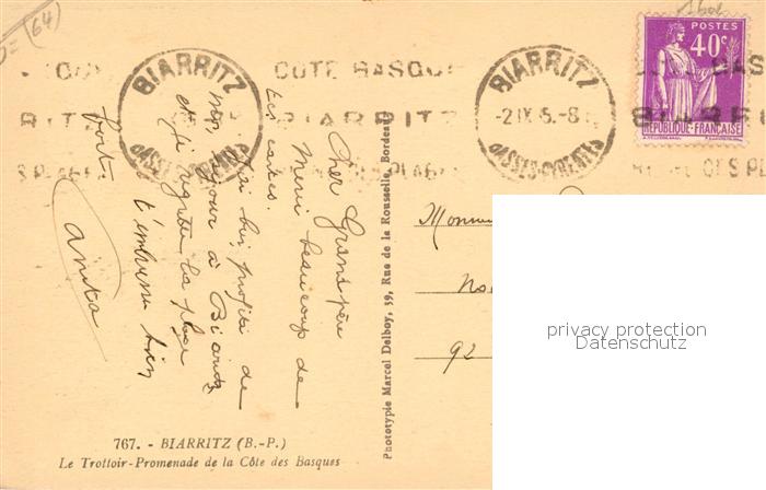 13531944 Biarritz Pyrenees Atlantiques Le Trottoir Promenade de la Cote des Basques KatCode 11170064164122