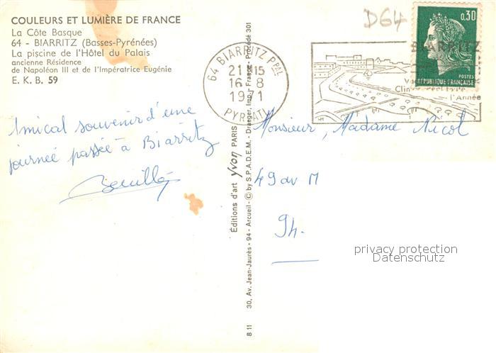 13537570 Biarritz Pyrenees Atlantiques Piscine de l_Hôtel du Palais Plage KatCode 11170064164122
