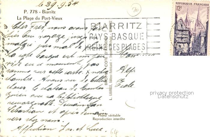 13530599 carte postale Biarritz Pyrenees Atlantiques Plage du Port Vieux postalisch gelaufen Erhaltung siehe scans [LiesaD40] KatCode: 11170064164122
