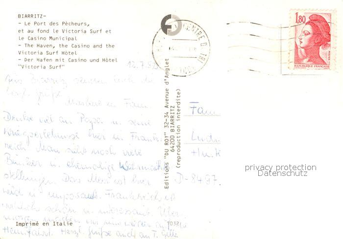 13361284 carte postale Biarritz Pyrenees Atlantiques Port des Pêcheurs Hotel Victoria Surf Casino Municipal postalisch gelaufen Erhaltung siehe scans [FriedD77] KatCode: 11170064164122