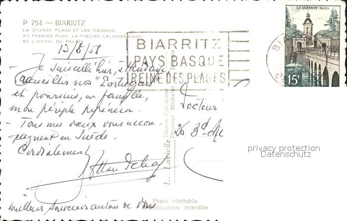 12434931 carte postale Biarritz Pyrenees Atlantiques Strand postalisch gelaufen Erhaltung siehe scans KatCode: 11170064164122