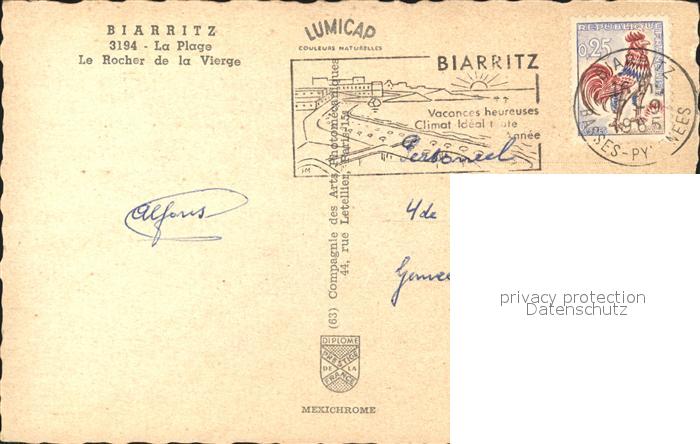 12315565 carte postale Biarritz Pyrenees Atlantiques Strand et le Rocher de la Vierge postalisch gelaufen Erhaltung siehe scans KatCode: 11170064164122