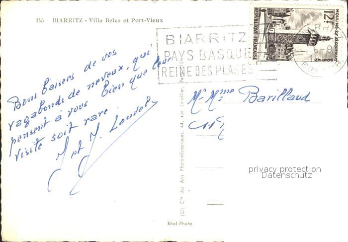 12230233 carte postale Biarritz Pyrenees Atlantiques Villa Belza in der Brandung postalisch gelaufen Erhaltung siehe scans KatCode: 11170064164122