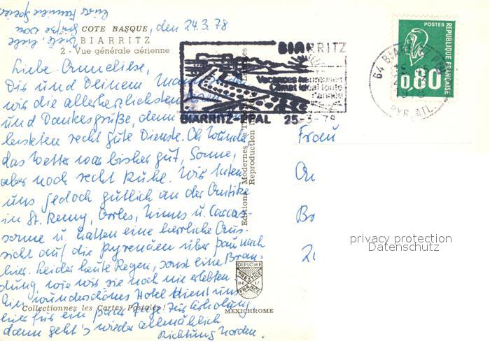 13241141 carte postale Biarritz Pyrenees Atlantiques Vue aérienne postalisch gelaufen Erhaltung siehe scans [FriedD77] KatCode: 11170064164122