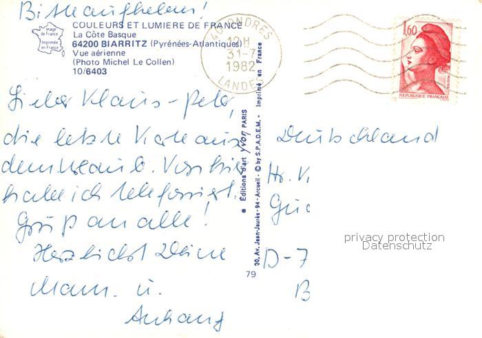 13235279 carte postale Biarritz Pyrenees Atlantiques Vue aérienne Collection Couleurs et Lumiere de France postalisch gelaufen Erhaltung siehe scans [FriedD77] KatCode: 11170064164122
