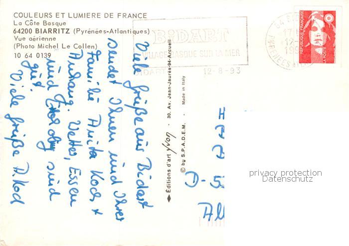 13805064 Biarritz Pyrenees Atlantiques Vue aerienne postalisch gelaufen Erhaltung siehe scans [FriedD77] carte postale Frie Katcode 11170064164122