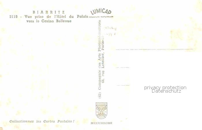 12910133 Biarritz Pyrenees Atlantiques Vue prise de l Hotel du Palais vers le Casino Bellevue postalisch nicht gelaufen Erhaltung siehe scans [FriedD77] KatCode: 11170064164122