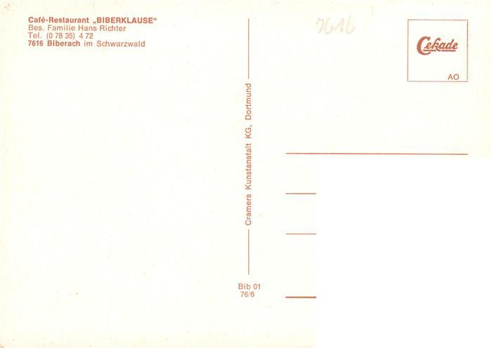 73931072 Biberach Baden Biberklause Gastraeume postalisch nicht gelaufen Erhaltung siehe scans [FriedD77] KatCode: 11110008317011