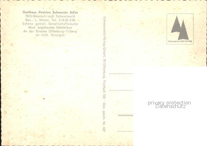 72414392 Biberach Baden Gasthaus Pension Schwarzer Adler postalisch nicht gelaufen Erhaltung siehe scans KatCode: 11110008317011