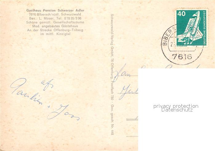 72941705 alte Postkarte Biberach Baden Panorama Gasthaus Schwarzer Adler postalisch gelaufen Erhaltung siehe scans [WerneD78] KatCode: 11110008317011