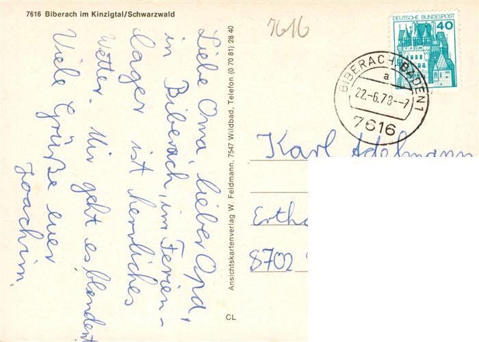 73930483 Biberach Kinzigtal Baden Panorama Erholungsort im Schwarzwald Kirche Landschaft Wandern Freibad postalisch gelaufen Erhaltung siehe scans [FriedD77] alte Postkarte Frie Katcode 11110008317011