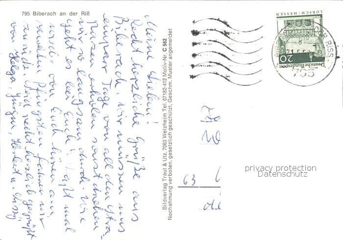 72460605 alte Postkarte Biberach Riss postalisch gelaufen Erhaltung siehe scans KatCode: 11110008426021