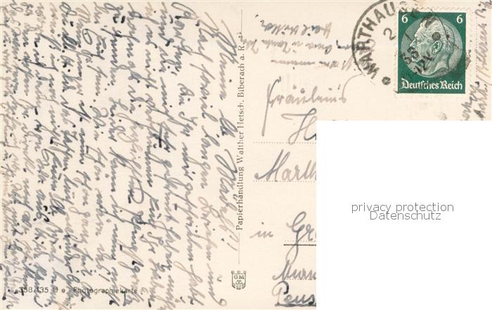 73775768 alte Postkarte Biberach Riss Ansicht vom Waldrand aus postalisch gelaufen Erhaltung siehe scans [FriedD77] KatCode: 11110008426021