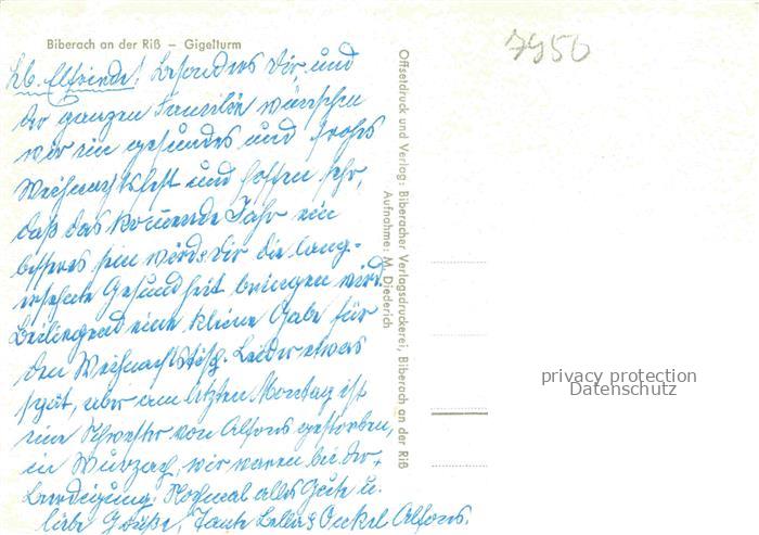 74050816 BIBERACH Riss BW Gigelturm postalisch nicht gelaufen Erhaltung siehe scans [WerneD78] KatCode: 11110008426021