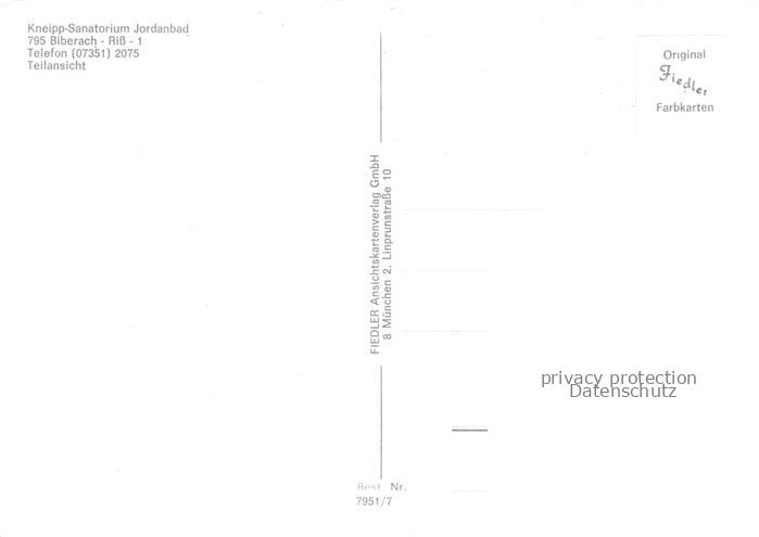 74050801 BIBERACH Riss BW Kneipp Sanatorium Jordanbad postalisch nicht gelaufen Erhaltung siehe scans [WerneD78] KatCode: 11110008426021
