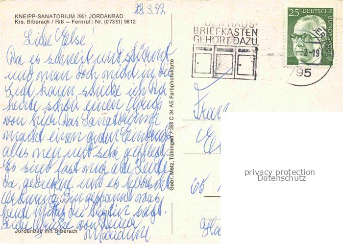 74050981 alte Postkarte BIBERACH Riss BW Kneipp Sanatorium Jordanbad postalisch gelaufen Erhaltung siehe scans [WerneD78] KatCode: 11110008426021