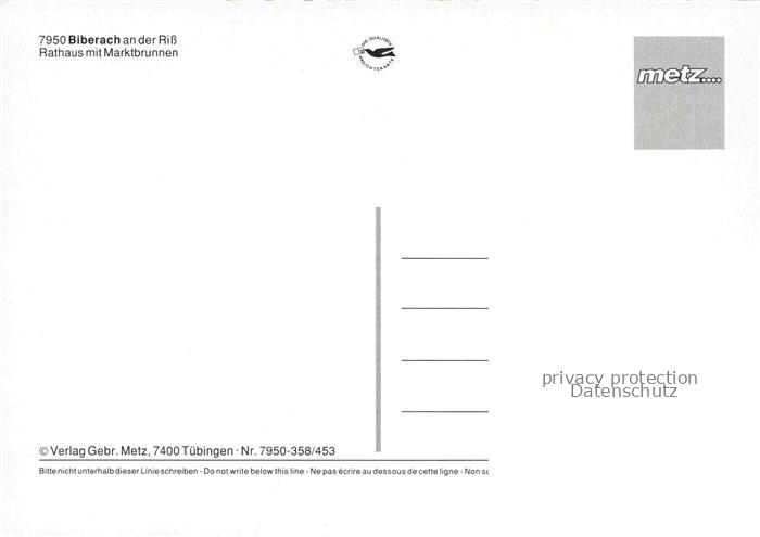 74050810 BIBERACH Riss BW Rathaus mit Marktbrunnen postalisch nicht gelaufen Erhaltung siehe scans [WerneD78] KatCode: 11110008426021
