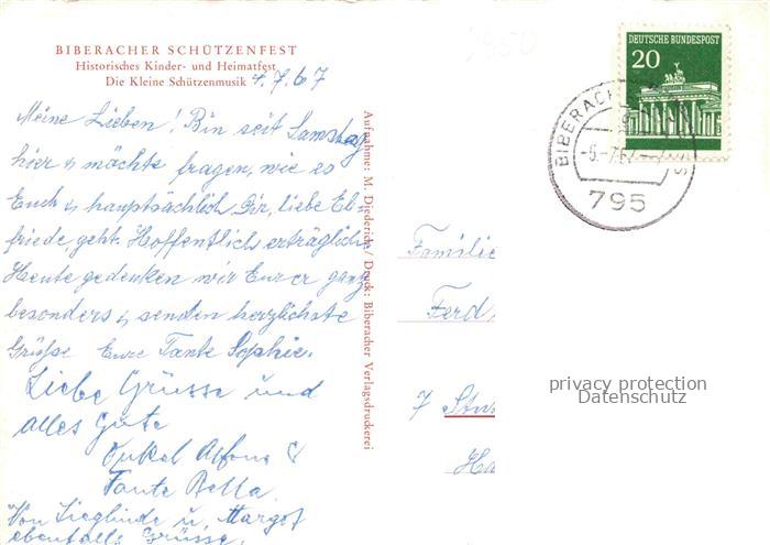 74050812 alte Postkarte BIBERACH Riss BW Schuetzenfest Kleine Schuetzenmusik postalisch gelaufen Erhaltung siehe scans [WerneD78] KatCode: 11110008426021