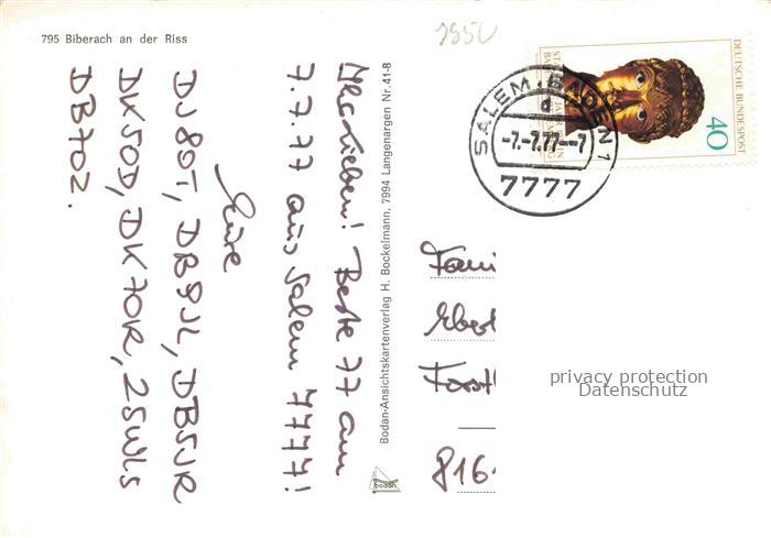 74050828 alte Postkarte BIBERACH Riss BW Stadttor Marktplatz St Martinskirche Jordanbad Weisser Turm postalisch gelaufen Erhaltung siehe scans [WerneD78] KatCode: 11110008426021