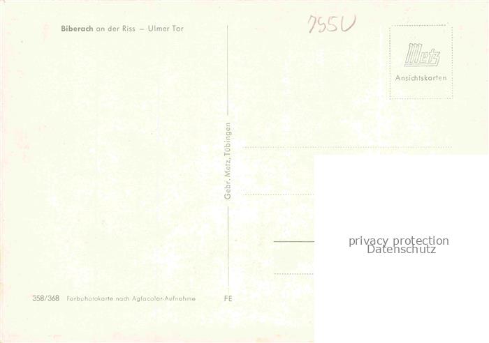74040906 BIBERACH Riss BW Ulmer Tor postalisch nicht gelaufen Erhaltung siehe scans [WerneD78] KatCode: 11110008426021