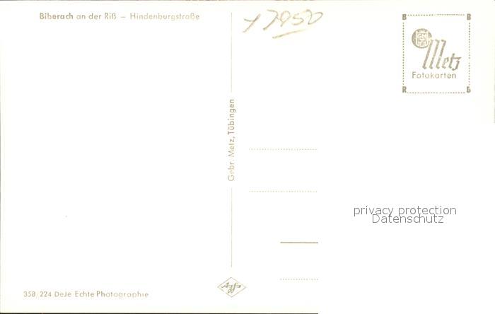 41760104 Biberach Riss Hindenburgstrasse postalisch nicht gelaufen KatCode: 11110008426021