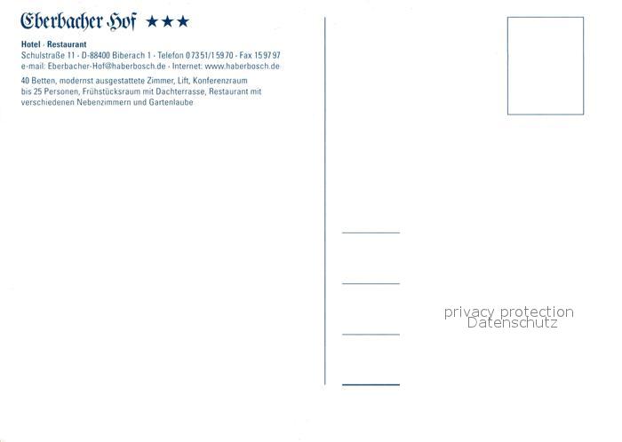 73644325 Biberach Riss Hotel Restaurant Eberbacher Hof postalisch nicht gelaufen Erhaltung siehe scans [FriedD77] KatCode: 11110008426021